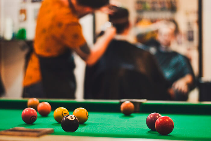 Criar um ambiente descontraído é uma maneira de tornar sua barbearia única e proporcionar momentos agradáveis para os clientes. Uma ideia é incorporar um pequeno espaço para jogos, como uma mesa de pebolim, um fliperama retrô ou um console de videogame, criando uma atmosfera divertida.